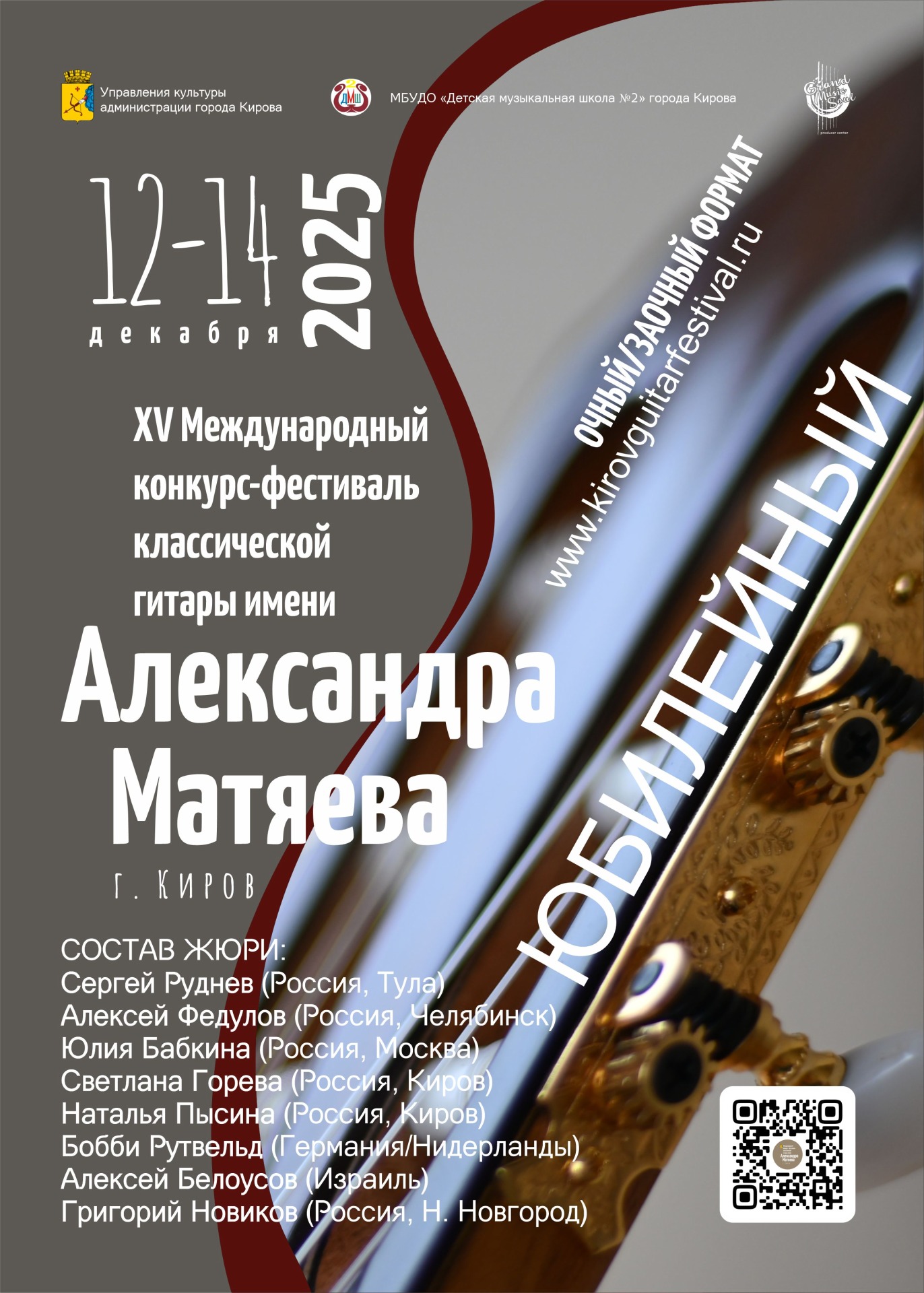 15-й международный фестиваль - конкурс классической гитары имени Александра Матяева. Киров, Россия, 12.12-14.12.2025